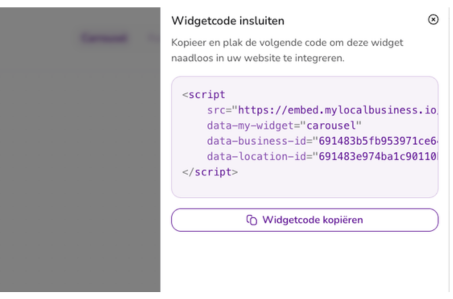 Integreer de widgets eenvoudig door een korte code snippet te kopiëren en te plakken in de HTML van je website. Je hebt geen technische kennis nodig.