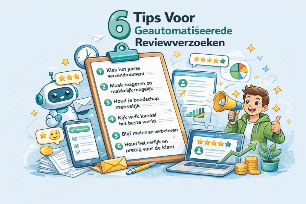 Geautomatiseerde reviewverzoeken zijn in de basis simpel: je vraagt klanten automatisch om feedback na een relevant moment. Toch is de impact groot. Je maakt reviewverzameling consistenter, schaalbaarder en vaak ook effectiever dan wanneer je afhankelijk blijft van losse handmatige acties. Voor bedrijven die reviews serieus willen opbouwen, is dit meestal geen luxe maar een logische volgende stap.